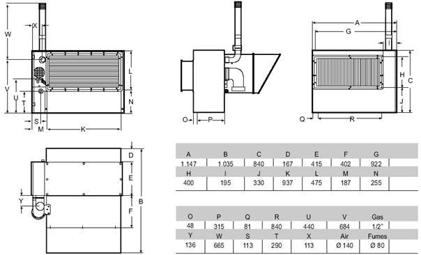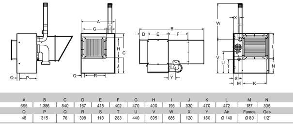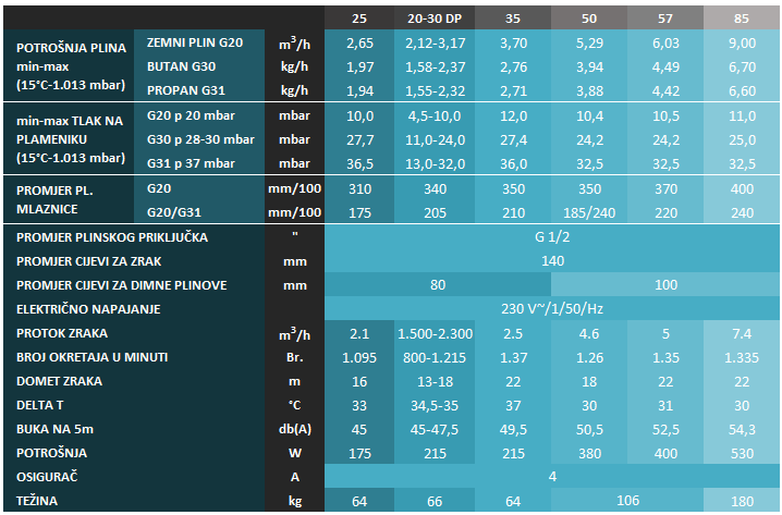 - ventilator za izbacivanje dimnih plinova (osim kod modela 85)