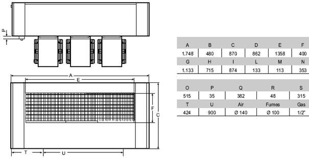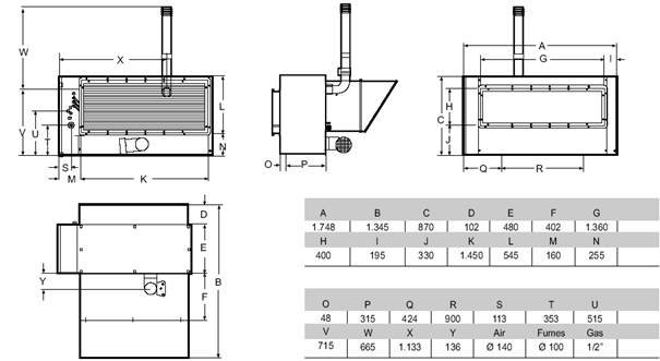 - atmosferski plamenik od inox čelika s elektrodama paljenja i ionizacijskom elektrodom (kod modela 85 nalaze se dva plamenika po jedan na suprotnim stranama)