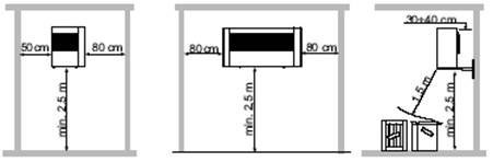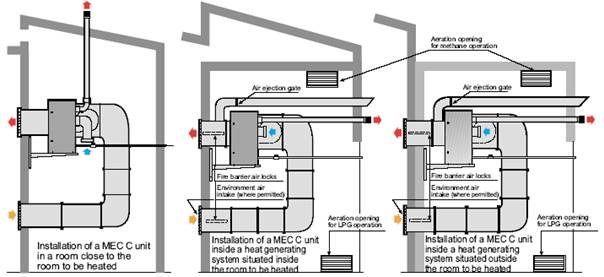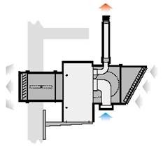 Dovod zraka za izgaranje je iz prostorije koja se želi zagrijavati, dok je odvod dimnih plinova izveden direktno kroz vanjski zid ili krovište.