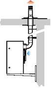 Izgaranje je odvojeno u odnosu na prostor gdje se uređaj želi montirati, a odvod dimnih plinova i dovod zraka za izgaranje je van prostorije pomoću odgovarajućih dovodnih i odvodnih cijevi kroz zid koje mogu biti na različitim stranama objekta. Odvod dimnih plinova može se izvesti kroz krovište.
