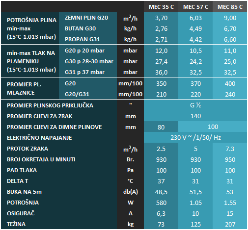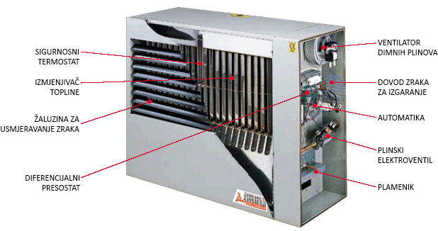 Definiraju se kao ˝Plinski kaloriferi zrak-zrak s atmosferskim plamenikom i ventilatorom u krugu izgaranja˝.