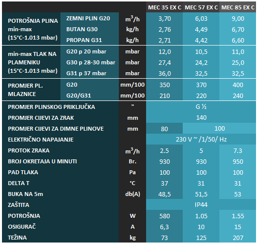Kaloriferi MEC EX projektirani su za vanjsku montažu, te su kao takvi atestirani i imaju zaštitu IP 44.