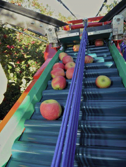 Oštećenje voća je svedeno na minimum i to zahvaljujući specijalnim transportnim trakama koje prenose voće do automatskog sistema za popunjavanje sanduka.